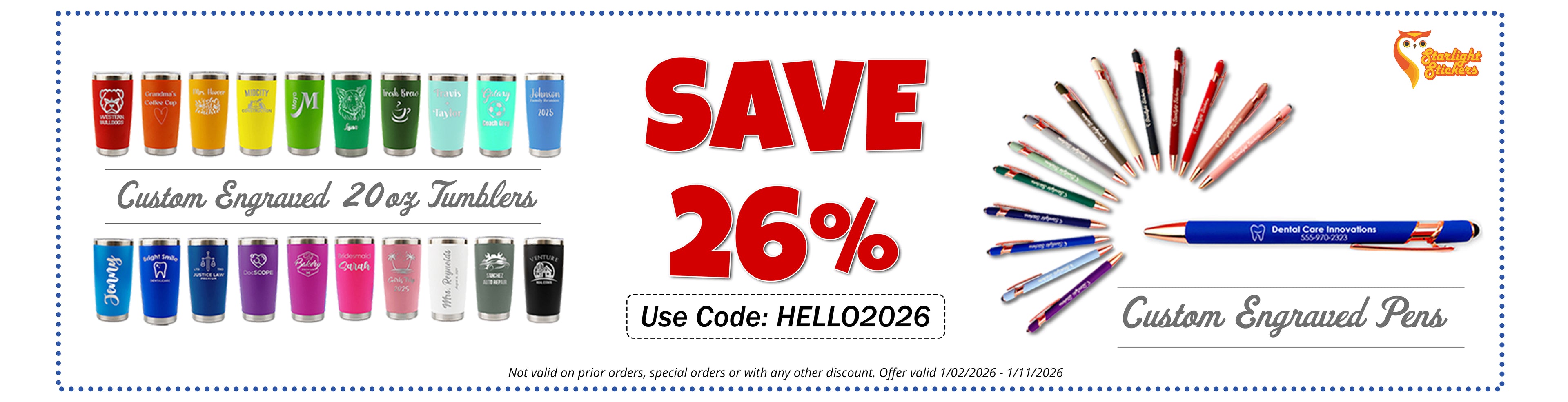 Where Custom, Creativity and Quality meet, we are Starlight Stickers! We provide a personalized touch with the custom products we produce. Our Colorado based team is our top priority so that we are ready to meet the needs of our personalized product customer.